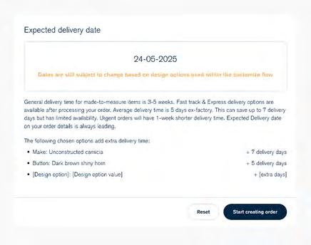 Finally, join us as we move into a brand new office in Amsterdam this summer (p. 91). Our first official working day in the new building will be July 14, 2025! As your trusted partner in menswear, we invite you to embrace the transformation of the season with us, using this collection to inspire your clients, take the service experience to the next level and elevate every look. To see the full collection and experience the new pieces in person, we welcome you to visit any of our showrooms – and as always, we’re just a phone call or email away for any questions, advice or ideas for the Fall/ Winter 2025 season.