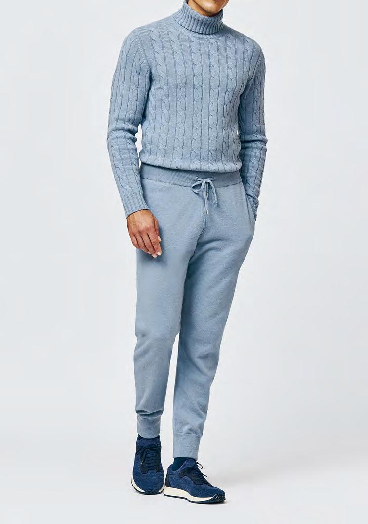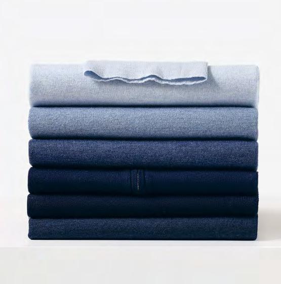 Wrap yourself in luxurious layers of knitwear, including our newest yarn: extra-fine merino wool from Zegna Baruffa Lane Borgosesia (p. 41). Just in time for the cooler months, we’ve also added new scarf qualities, available in two knit types: half English rib or plain (p. 42). You’ll also enjoy a rich new palette of seasonal colors for cashmere, cotton-cashmere and wool-cashmere (p. 40).