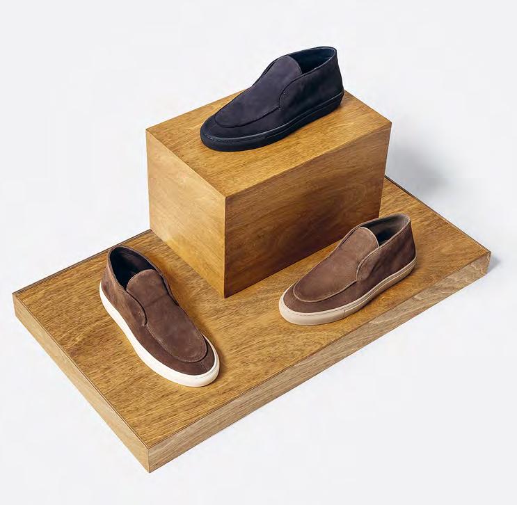 This September, we’re excited to launch a new shoe collaboration in Portugal with a renowned atelier (p. 52). We’ll start by transferring all your casual shoe orders to this facility and follow with formal shoe orders next year. We’re also unveiling the stylish new runner model, customizable with mesh or knit options (p. 50), alongside an updated suede collection featuring fresh colors (p. 49), our latest additions including low-top city loafers with laces (p. 48), boat shoe sneakers (p. 51) and more.