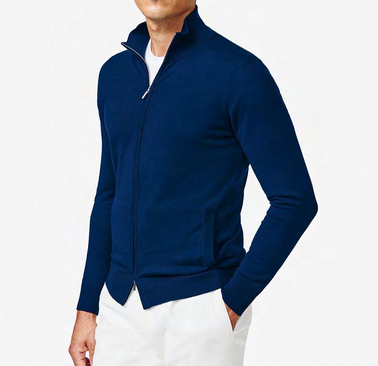 You’ll also be able to choose new design options like the full-zip polo collar. In our knitwear range, we’ll be presenting shirt cuffs for our knitted polos and cardigans with polo collars. This unique twist on the classic polo blends casual and refined elements, updating and elevating your look.