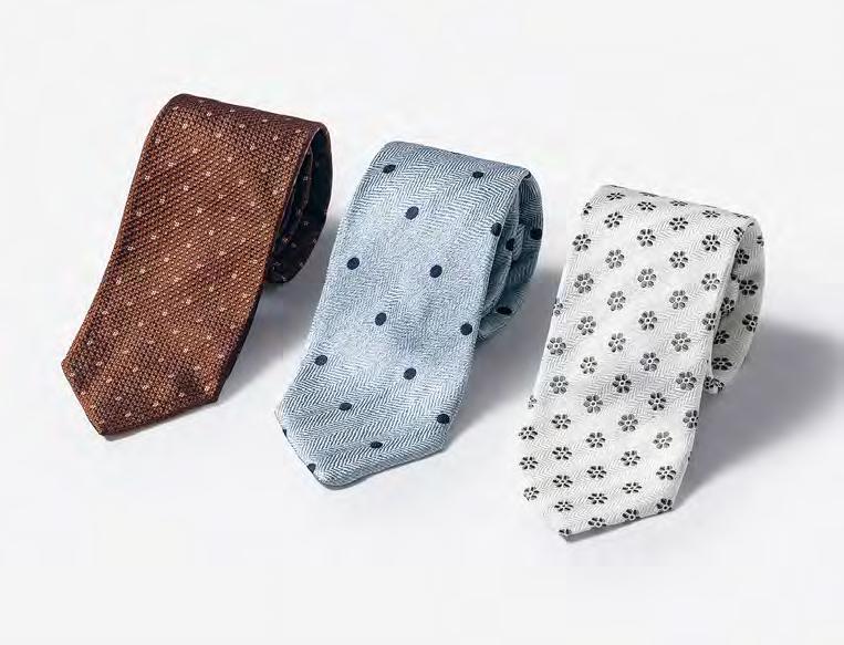 Explore our selection of four seasonal jacquards in pure silk and four seasonal options in cotton-silk blends featuring patterns ranging from floral motifs to subtle micro patterns. With their elegant drape and natural shine, these ties effortlessly elevate both classic and contemporary looks.