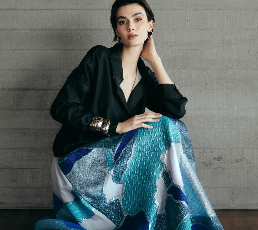 Silhouettes are equally enchanting. Oversized, fluid shapes take center stage, offering movement and elegance in equal measure—while new arrival Leo Lin captures the spirit of quintessential Derby dressing through playful prints and statement designs. Billowing sleeves, sweeping skirts, and relaxed tailoring create that undone-yetintentional balance we crave as the days grow warmer. Dreamy appliqué and delicate lace add dimension and a hint of nostalgia, echoed in the event-ready pieces from newly introduced Hilton Hollis, known for luxurious fabrics and beautifully easy silhouettes.