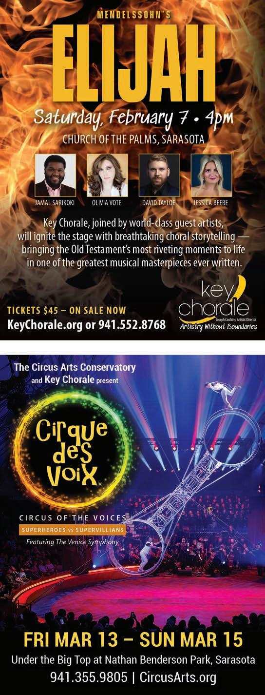 •Visual Arts Center: 210 Maud St, Punta Gorda. Main Gallery— thru Feb 3: Dream Big or Go Small; Feb 19-Mar 26: Biennial Nat’l Art Exhibition. Goff Gallery— thru Feb 3: Dream Big or Go Small; Feb 13-Mar 26: Biennial Nat’l Art Exhibition. Rebecca Hall— thru Feb 3: Susan Fraley & Rosalie Mack. Mon, Thu, Fri 9a-4p; Tue & Wed 9a-7p, Sat 10a-4p. 941-639-8810.