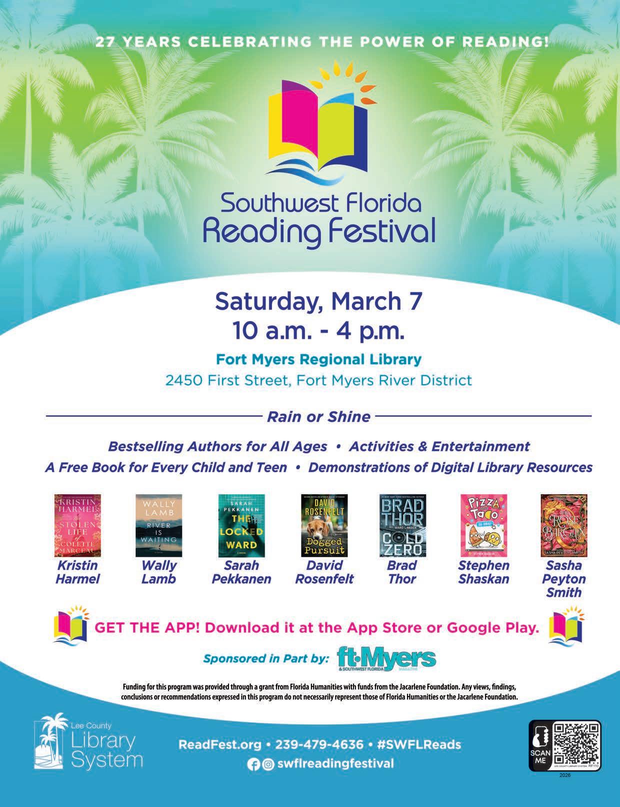 More than two dozen awardwinning and best-selling authors will be appearing at Lee County Library System’s 27th annual Southwest Florida Reading Festival on Saturday, March 7.