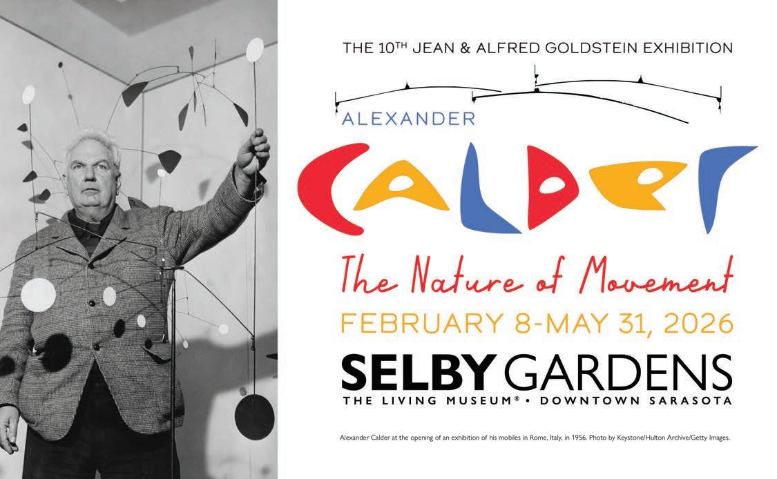 The exhibition, ‘Alexander Calder: The Nature of Movement’, will be on view February 8- May 31 at the Downtown Sarasota campus of Marie Selby Botanical Gardens.