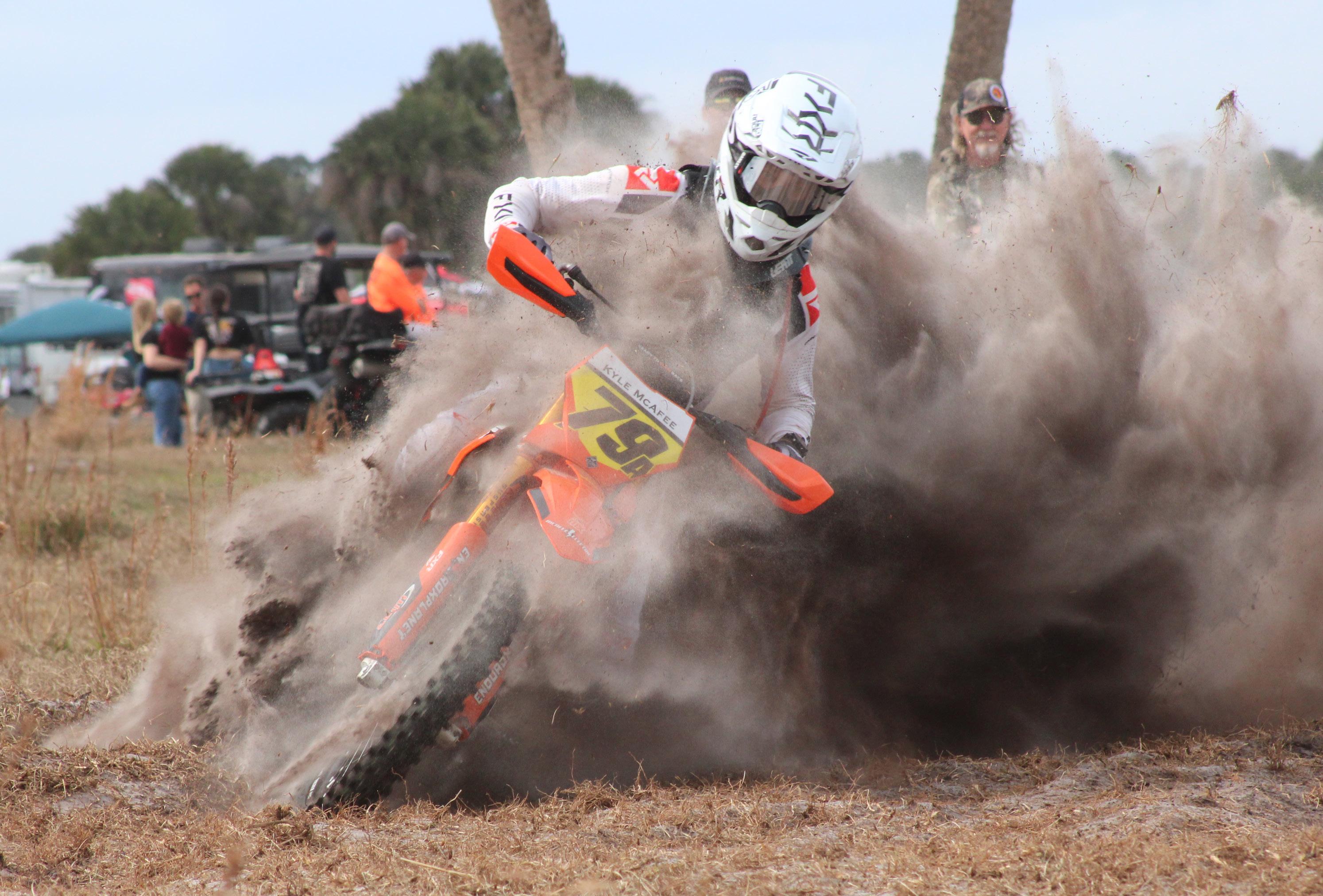 I thought Florida was supposed to be the sunshine state. What in the world happened to the weather at Indiantown Harescramble? Great track. Great conditions. Icy cold temperatures… well icy cold for Florida that is. I had a hard time getting going at the start of the race because I felt so stiff. That Indiantown track is fast and rough. You need to be loose on the bike but I felt so cold and stiff. After the race, I think that was the sorest I’ve been all year. I really think it was the cold weather. The body just wasn’t adapted to those conditions.