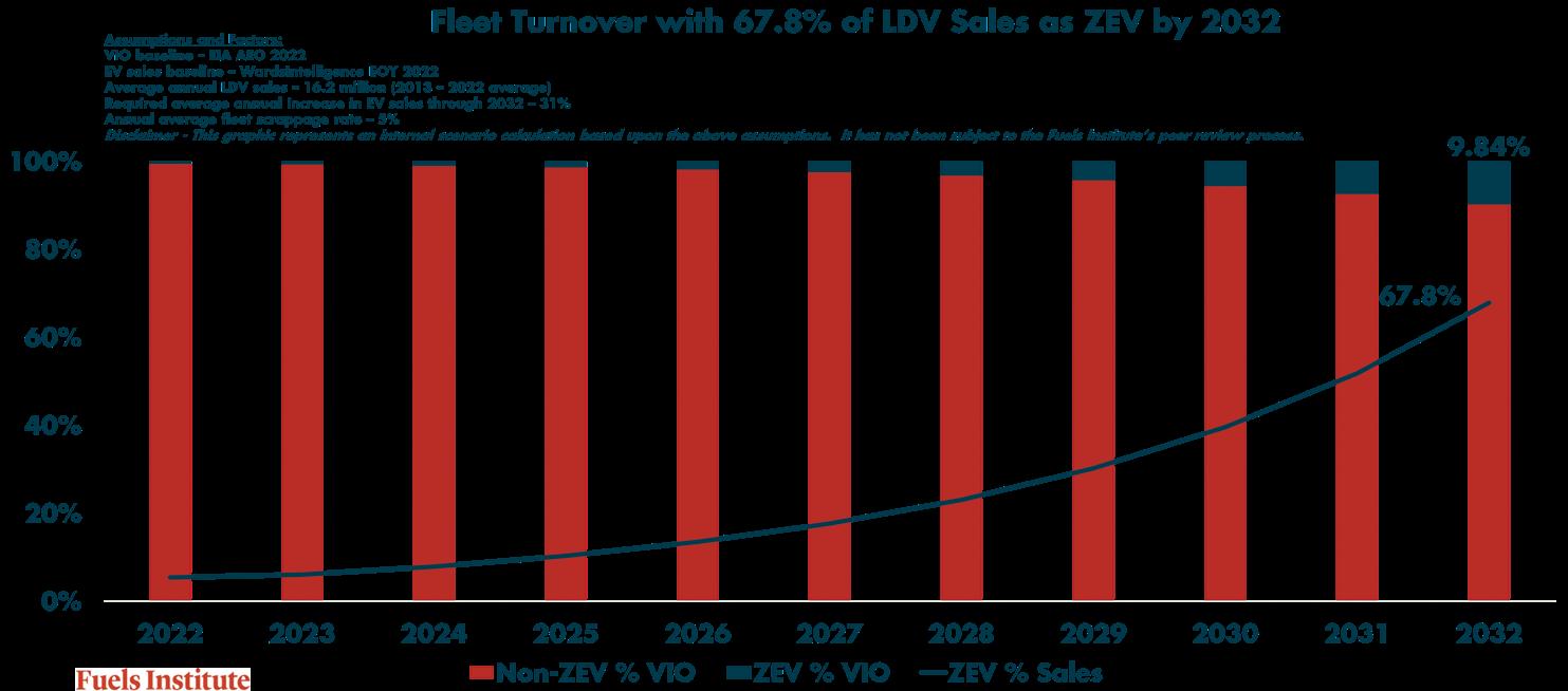And even if the new policy were successful in converting 67% of new vehicle sales to BEV by 2032, that would leave more than 90% of the vehicles in operation still operating on liquid fuel. What will we do about those vehicles? An unfortunate consequence of policies that seek to eliminate specific technologies is that they send a signal to the market to stop working on those technologies. Without innovation in low-carbon fuel production to support ICEVs, efforts to mitigate carbon emissions will be significantly impeded. There must be a way to encourage new technology while supporting innovation in legacy systems that will remain in operation for decades.