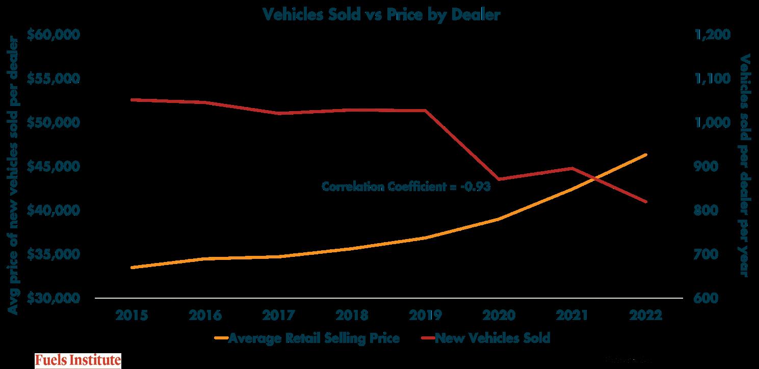 But we cannot underestimate the importance of affordability. To affect significant change long term, we need to turn the fleet over to lower emitting vehicles. Yet, the price of a new vehicle will largely determine our ability to do that, and new vehicles are becoming less and less affordable, with the average price of a new vehicle surpassing $48,000 this year. Add to this the impact of inflation on financing costs (the way in which most Americans buy a vehicle), and rapid fleet turnover is becoming less attainable. Look at the following charts—as the average price for a new vehicle has increased, sales of new vehicles have decreased. This is not a coincidence and will slow down the rate of fleet turnover and, consequently, the pace at which we reduce carbon emissions.