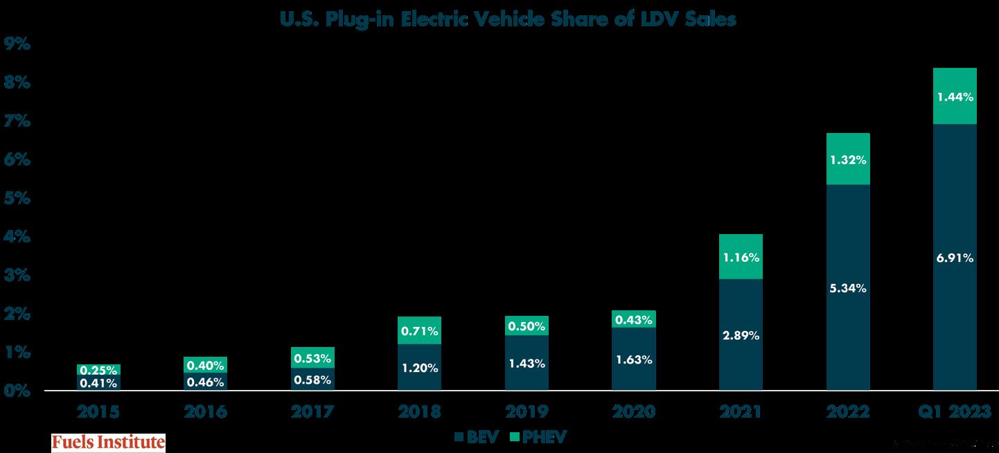 Sales of BEVs in the U.S. may lag other countries, but they have shown great momentum and in first quarter of 2023 represented 6.9% of all light-duty vehicle sales, with approximately 50 different models available for purchase. And with most vehicle manufacturers investing heavily in their BEV production capacity, these numbers are almost certainly going to increase.