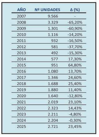 A partir de dicho año, el mercado ha vuelto a activarse, pero muy alejado de las casi 10.000 máquinas del año 2007. En el ejercicio 2025 ha habido un importante incremento, de un 23,45%, y todo parece indicar que este 2026 el mercado va a seguir en esa tendencia de crecimiento tan fuerte.