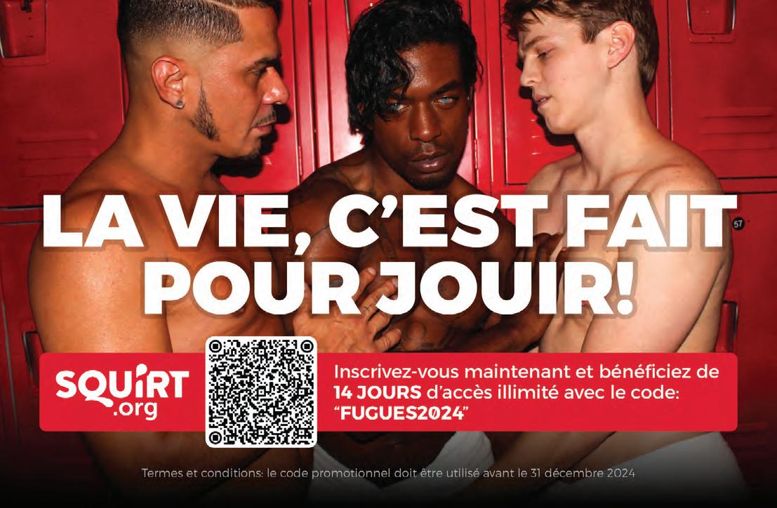 Toute reproduction, adaptation ou traduction est interdite sans l’autorisation de l’éditeur. Les articles publiés n’engagent que leurs auteurs et ne sont pas nécessairement les opinions du magazine. Fugues n’est pas responsable des manuscrits, visuels, dossiers électroniques et photos qui lui sont soumis. Le matériel non sollicité envoyé demeure la propriété de Fugues. La parution du nom ou de la photographie d’un individu dans cette publication n’implique nullement une définition de son orientation sexuelle ou de son identité de genre. L’exactitude de toute information fournie dans les annonces relèvent de la responsabilité des annonceurs. L’éditeur se réserve le droit de publier ou non tout matériel fourni par les annonceurs et/ou auteurs. La version imprimée et les versions numériques de FUGUES rejoignent plus de 330 000 personnes chaque mois (167 000 lecteurs pour la version imprimée et plus de 160 000, pour la version numérique). Dorénavant, le tirage imprimé de Fugues variera (selon les mois) entre 22 000 et 27 000 exemplaires (le magazine est disponible dans plus de 180 lieux de distribution au Québec).