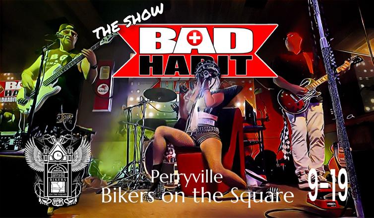 On the 19th our friends, Bad Habit Band will be kickin it for Bikers on the Square in Perryville Mo. Times 7pm to 11pm. You don’t want to miss a minute of the music or stage show.