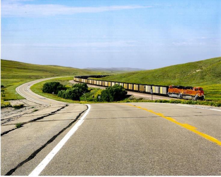 landscape and expansive ranchlands. The BNSF Railroad runs parallel to the highway most of the way, so we saw plenty of trains as we cruised along the highway.