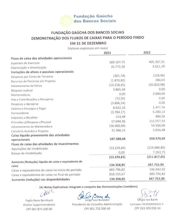 Ao longo de 20 anos, os Bancos Sociais realizaram uma ampla gama de doações para instituições do Rio Grande do Sul, incluindo livros, materiais de construção, alimentos e muitos outros itens que beneciaram a população, tornando essa uma ação exitosa e inédita no Brasil.