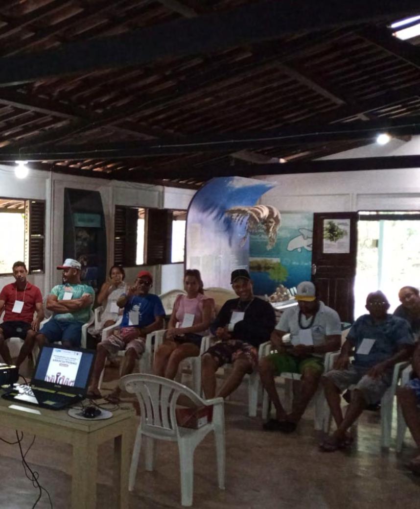Capacitações - Na APA da Barra do Rio Mamanguape, o Projeto Viva o Peixe-Boi-Marinho vem apostando no estímulo ao desenvolvimento comunitário e na capacitação de todos que estão atuando com o turismo ecológico de observação de peixesbois-marinhos e em toda essa cadeia produtiva que se forma em torno da conservação da espécie para que as atividades sejam realizadas de forma funcional, colaborativa com a conservação da espécie e que possibilite uma alternativa de geração de renda para a comunidade. Uma série de capacitações foram promovidas neste segundo semestre de 2022.