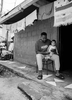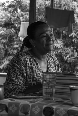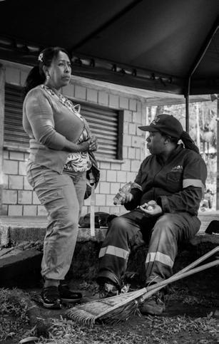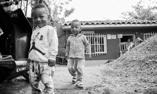 Quedaron estáticos sí los descendientes de los esclavos que se asentaron, casi que apaciblemente, no lejos de las minas en sitios como Guamal. En las fotos que Salomé les tomó a las personas hay un profundo silencio. La profesora y sus alumnas están absortas; el padre con su recién nacida mirando el celular no tiene palabras; la barrendera y su visita son silenciosas, inclusive la abuela y la nieta con el cabello trenzado traslucen una historia muda. Solo los niños juegan inquietos en el antejardín de su pequeño mundo y se oyen risas y sus voces llamándose.