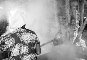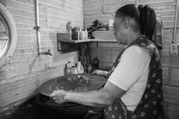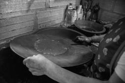 Salomé, como una pescadora con su red fotográfica, saca pescados blancos y negros y con ellos alimenta su afán de entender el mundo que tiene al frente. Intuitivamente gira la cámara y ve otro detalle de un rompecabezas que quiere armar. Fotos de los oficios, de la gente en su silenciosa cotidianidad.