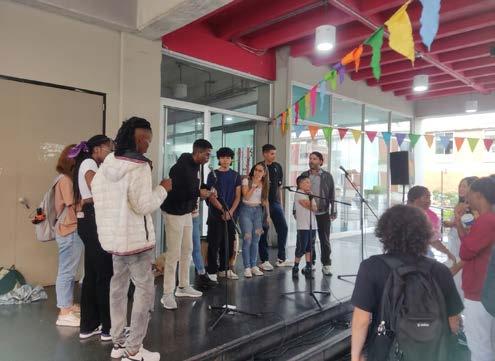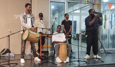 Luego realizamos juegos propios de las comunidades afros, como el yeimy, el abre y cierra y un juego de palabras. En esta actividad también se vinculó la mayoría de los estudiantes de la universidad que pasaron por el hall central.