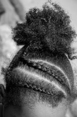 La abuela ha tejido el pelo de su nieta, así como lo hacían en su tierra de origen, colocando en cada trenza la historia de esa raza sufrida.