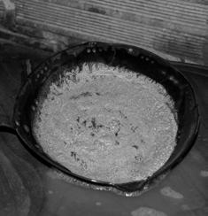 En un sartén con azogue se limpian las últimas impurezas del oro quedando listo para fundir.