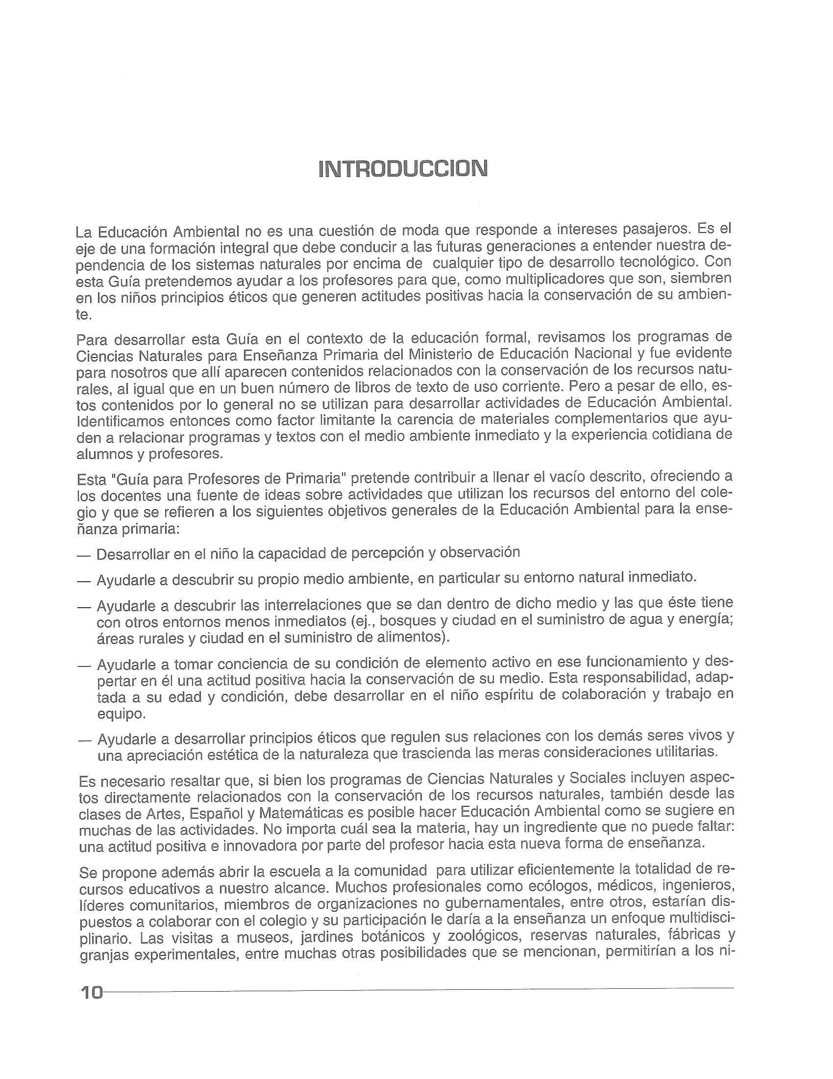 El libro parte de la reoconocida escazes de materiales adecuados a nuestro medio para hacer Educación Ambiental y se centra en estimular al docente para que utilice intensamente los recursos de su entorno inmediato.