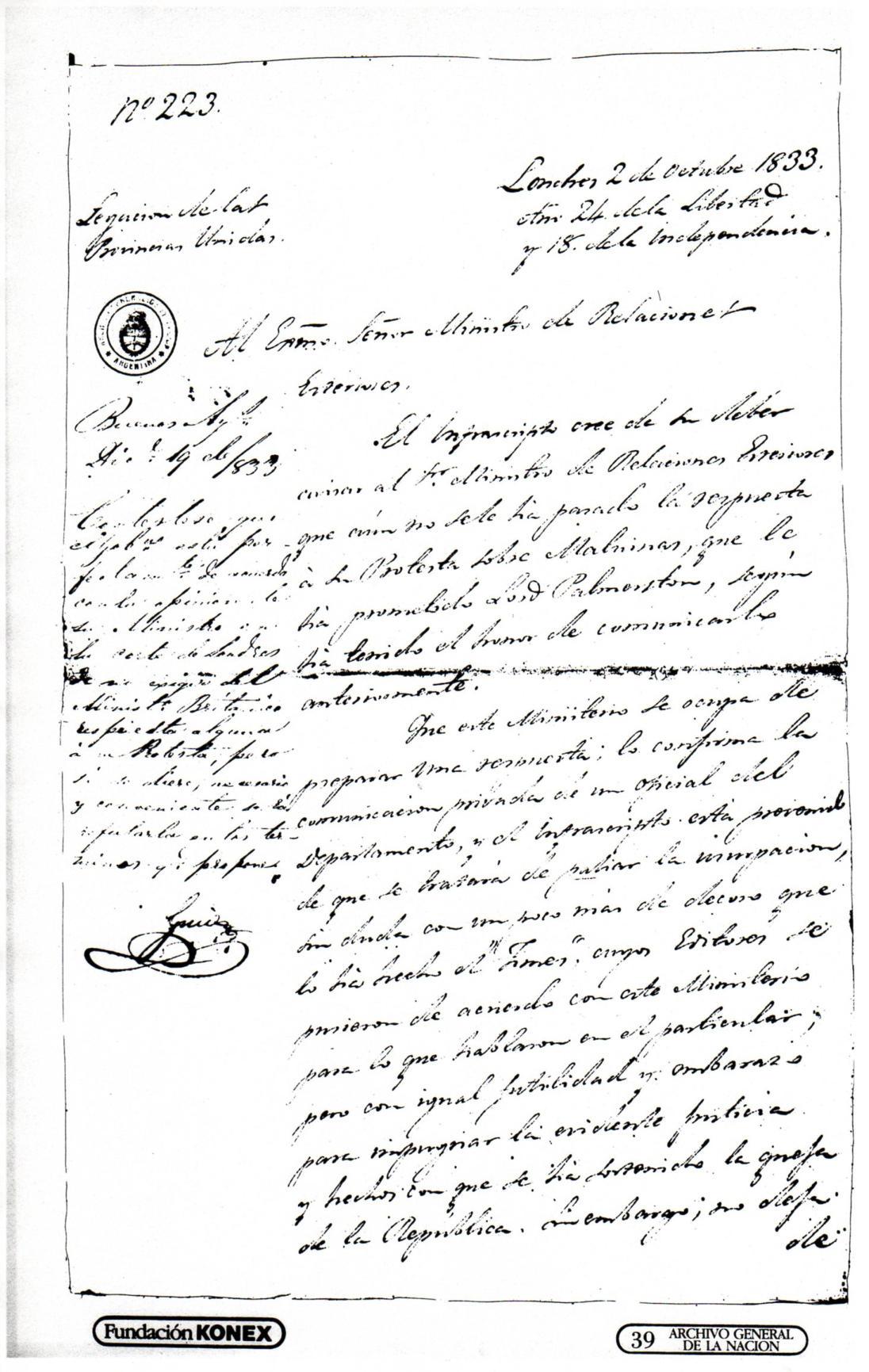 En la herencia histórica de nuestro pueblo, transmitida de generación en generación, está impresa la verdad de nuestra soberanía en las Islas Malvinas. Esa verdad no sólo está sustentada en irrefutables pruebas juridicas y geográficas. También la historia se encarga de confirmarla, con la certeza inconmovible de los hechos debidamente documentados. Esos documentos imprescindibles fueron registrados en el Archivo General de la Nación y se exhiben en los foros internacionales donde se dirime nuestra causa.