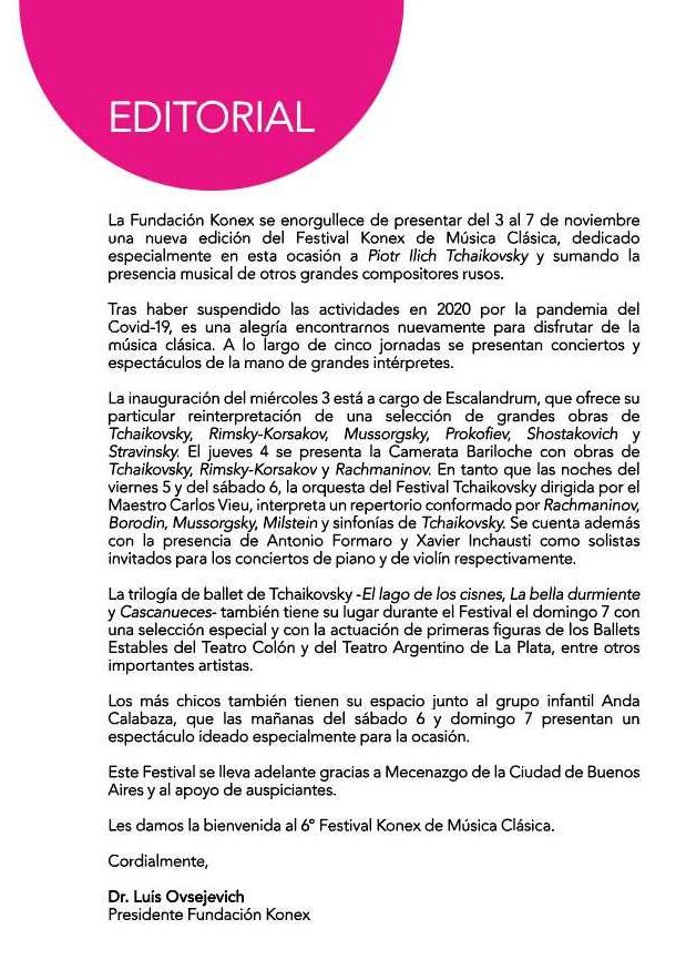 Programa de mano 6º Festival Konex de Musica Clasica 2021