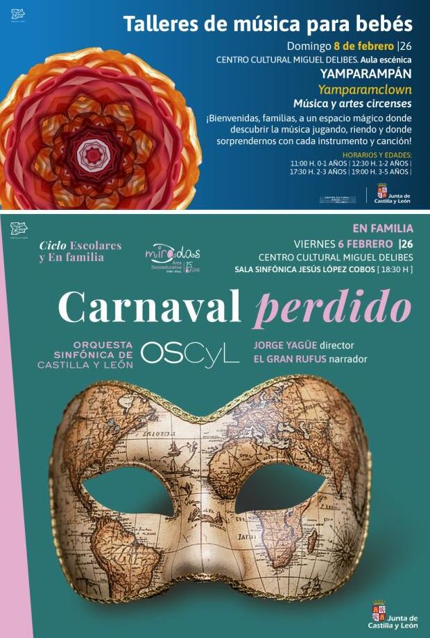 La Consejería de Cultura, Turismo y Deporte de la Junta de Castilla y León presenta la programación cultural para el mes de febrero con 520 actividades en su red de centros (museos regionales y provinciales, bibliotecas y archivos de Castilla y León, Palacio Quintanar, Filmoteca y otros centros de referencia), así como de la Orquesta Sinfónica de Castilla y León. Entre las novedades destacamos una nueva lectura de la Colección MUSAC con la muestra ‘¿No hay nada como el hogar?’, en el MUSAC, que se podrá visitar a partir del 28 de febrero; la exposición ‘Geometría Secreta. Paisajes de Castilla y León a vista de dron’, del fotógrafo David Arranz, en el Centro Cultural Miguel Delibes; la exposición de fotografía 'Mascaradas Ibéricas: Ritual e Identidad', en el Museo de Ávila y las muestras ‘Mujer, montaña, calavera, rosa’ de la artista Ángela Nordenstedt y ‘(des)HABITAR’, de la artista visual Olimpia Velasco, que nos propone Palacio Quintanar, en Segovia.