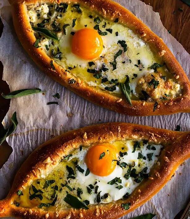 Es un pan relleno de queso procedente de la cocina de Georgia. El pan se elabora con levadura y sal para que crezca de tamaño durante su elaboración y puede ser de diversos tipos, dependiendo de la ciudad o pueblo donde se hace. El relleno contiene, por regla general, queso (fresco o curado) y, si es otro tipo, llamado acharuli khachapuri, tiene huevo.