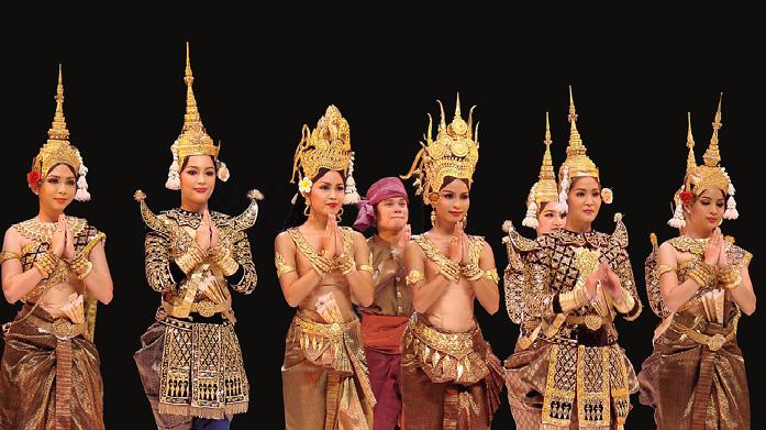 El baile de Apsara se remonta al siglo VII aunque llegó a máximo esplendor en el siglo XII, cuando en la corte del rey Jayavarman VII llegaron a haber más de 3.000 bailarinas. Su relevancia fue tal que las figuras apsaras se encuentran grabadas en los muros de muchos templos de Angkor. Hay muchos elementos espectaculares en los bailes apsaras, como los atuendos de seda o los intrincados tocados y complementos en oro y plata. Sin embargo, lo que más llama la atención son los gestos y las posturas corporales imposibles, donde las articulaciones logran curvaturas solo alcanzables tras muchos años de entrenamiento.