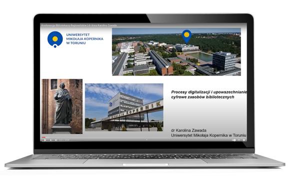 Główną Uniwersytetu Mikołaja Kopernika w Toruniu, udostępnianych jest w Kujawsko-Pomorskiej Bibliotece Cyfrowej, platformie której koordynatorem jest właśnie BG UMK. Stamtąd ucyfrowione zasoby trafiają m.in. na stronę europeana.eu oraz do Federacji Bibliotek Cyfrowych, serwisu zarządzanego przez Poznańskie Centrum Superkomputerowo-Sieciowe. Prelegentka opowiadała ponadto o polityce dostarczania obiektów autorskich do KPBC, jak również o metadanych i technikach optycznego rozpoznawania znaków, będących kluczem do przeszukiwania zdigitalizowanych materiałów: książek, czasopism, druków ulotnych, map.