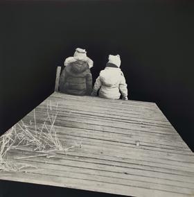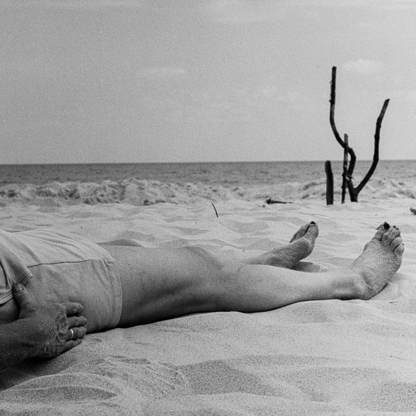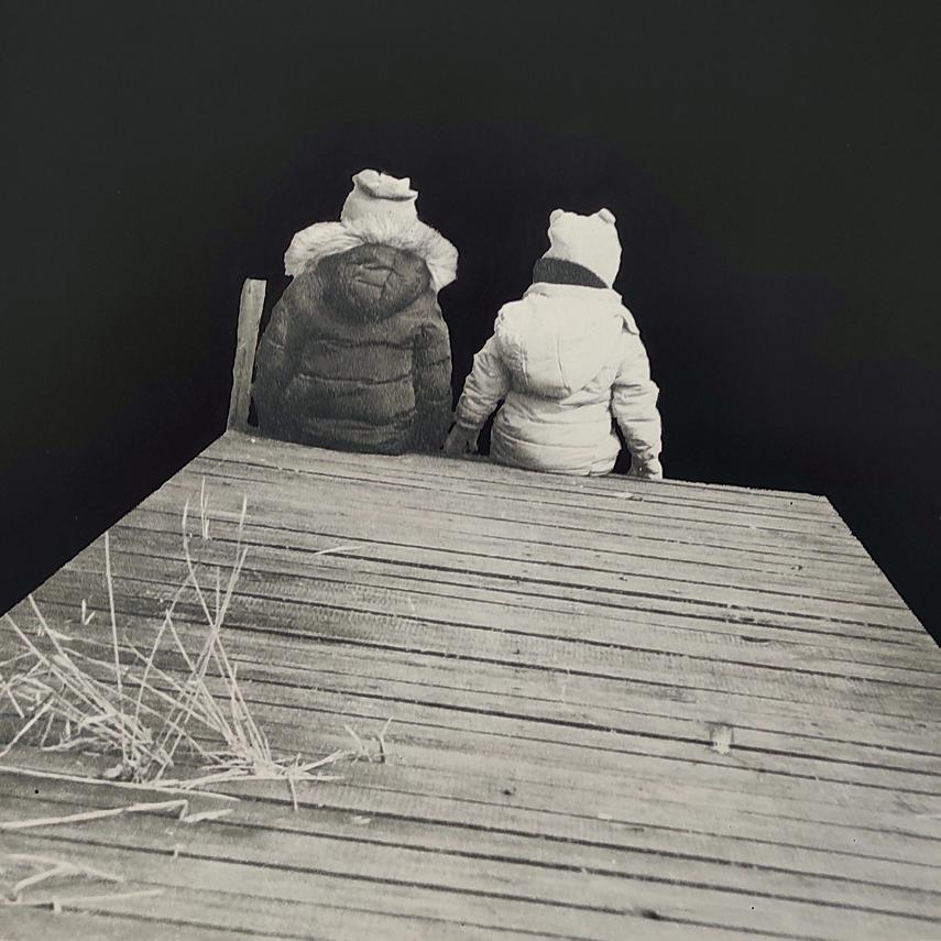 Tytuł obrazu: „dobre duchy nie odtrącajcie nas zbyt długo błądziliśmy po oceanach i gwiazdach strudzonych ponad miarę przyjmijcie do stada” Fotografia ciemniowa i akryl na płótnie, 80x80 cm, 2022 rok