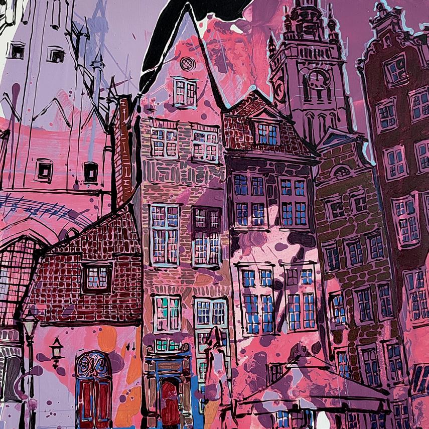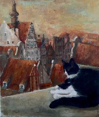 „Na dachu Gdanska”, rok 2022, olej , wym. 25x30.