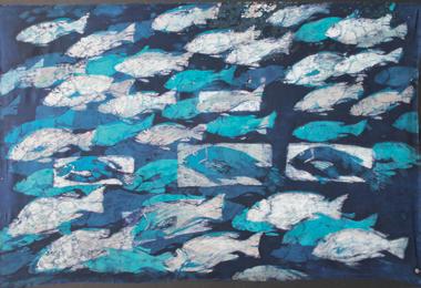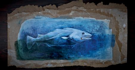 Ryba, technika mieszana na płycie, 40x80cm, 2022 rok
