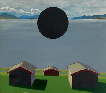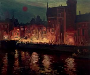 „Gwieździsta noc nad Stocznią Gdańską”,olej na płótnie, 92 x 73 cm, 2022