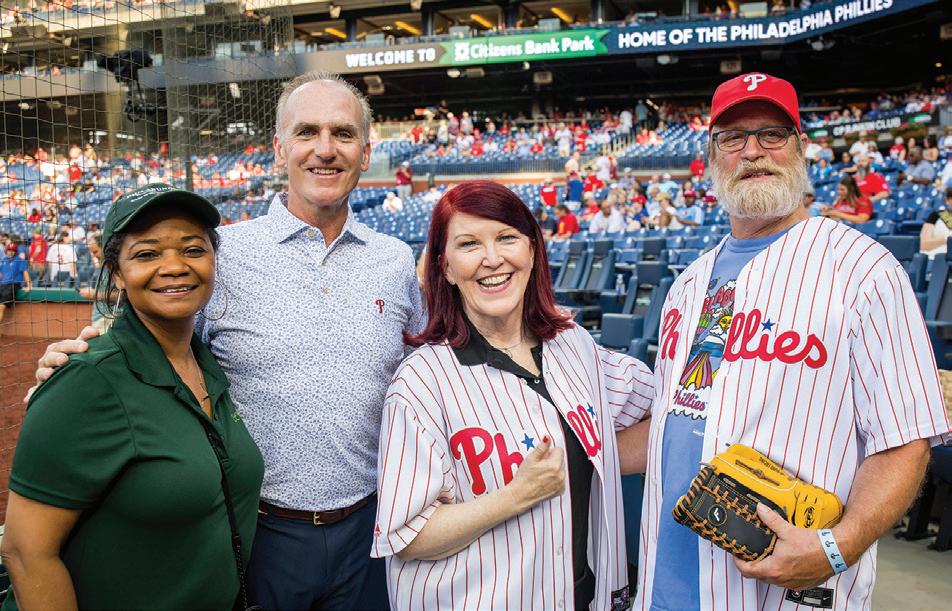 The Sunday night game against the New York Mets began with an extra-special honor. Philabundance’s longest-tenured employee, 30-year truck driver Chuck Fisher, joined actor Kate Flannery of The Office and Dan Fitzpatrick, Citizens Mid-Atlantic and Midwest Regions president, on the field for the ceremonial first pitch!