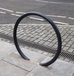 Manufactured from extremely durable polyurethane elastomer (PU) material, the Hammersmith cycle stand is formed around a strong steel inner core, with a matt black finish. Suitable for the visually imparied and complying with DDA guidelines.