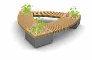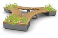 Trough planters at the end of each point offer the opportunity of significant planting, with the 3 sets of paired platforms providing curved seating between. The geometry of this layout even allows multiples to be linked together for further seating provision.