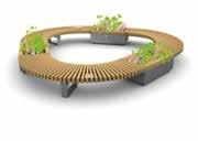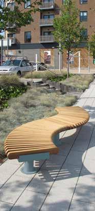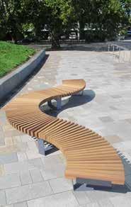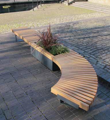 Straight line continuous seating might be considered fairly monotonous, offering only a single aspect (or double if back-to-back) that may have to be ‘broken’ where there are site features in the way. By adding curved modules the seating can divert around existing site features and also presents a far more visually interesting seating solution. When used in a back-toback arrangement as shown on the examples here, the seats are an unusual variation to a circular tree seat, that would be suited to a linear street layout as it takes up much less space than a full circle