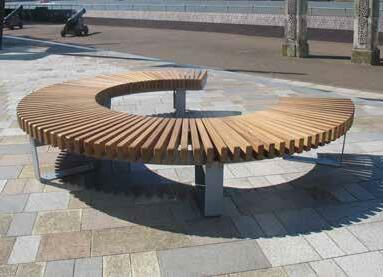 Full circular arrangements are ideal around site features such as trees, where users sit facing outwards and access to the central area is not needed.