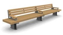 Backrests align with the bench supports, and are therefore inset from the ends of bench platforms. On long seat assemblies, backrests can be continuous or with gaps, and even staggered to both sides to provide dual aspect seating.