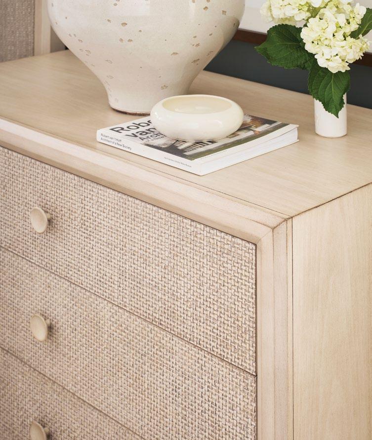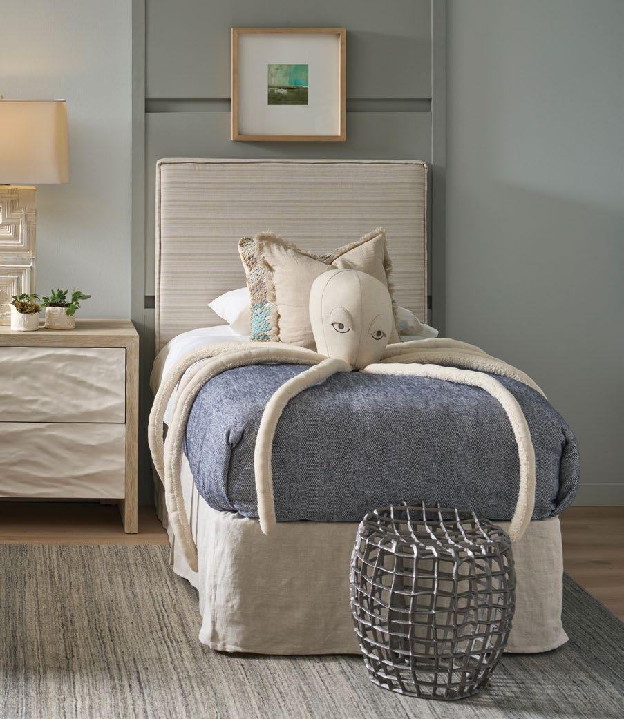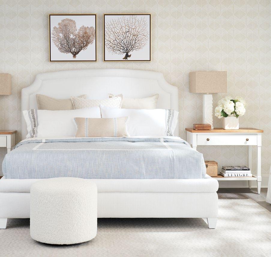 A soothing palette of creams and blues, paired with natural textures, gives this bedroom its coastal charm. Soft linens and subtle layers make it the perfect place to unwind.