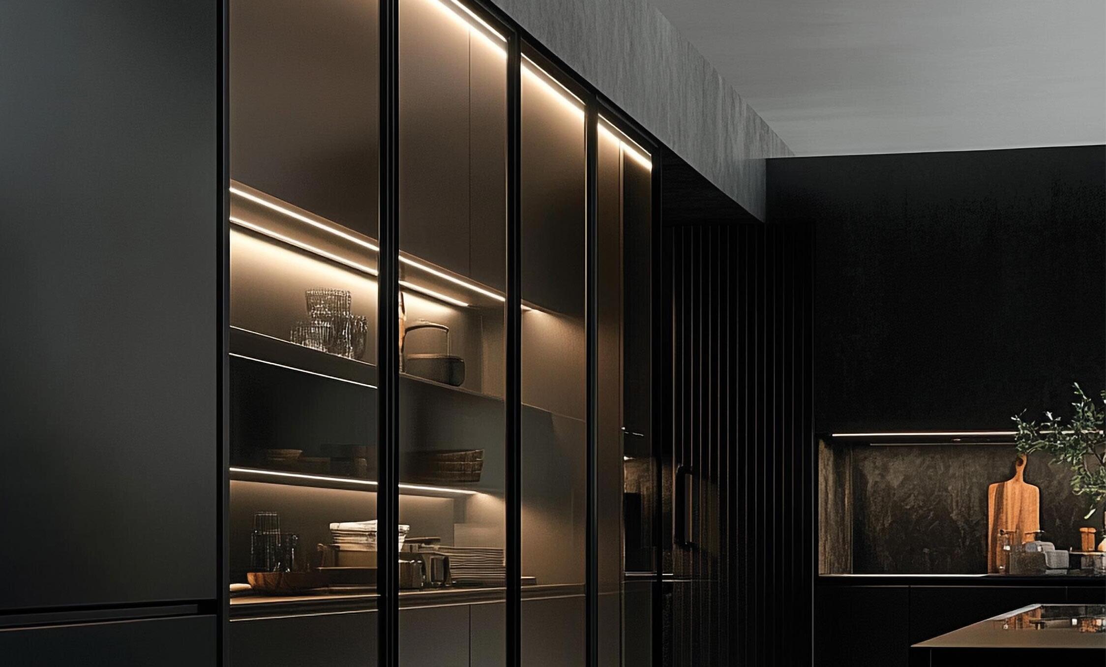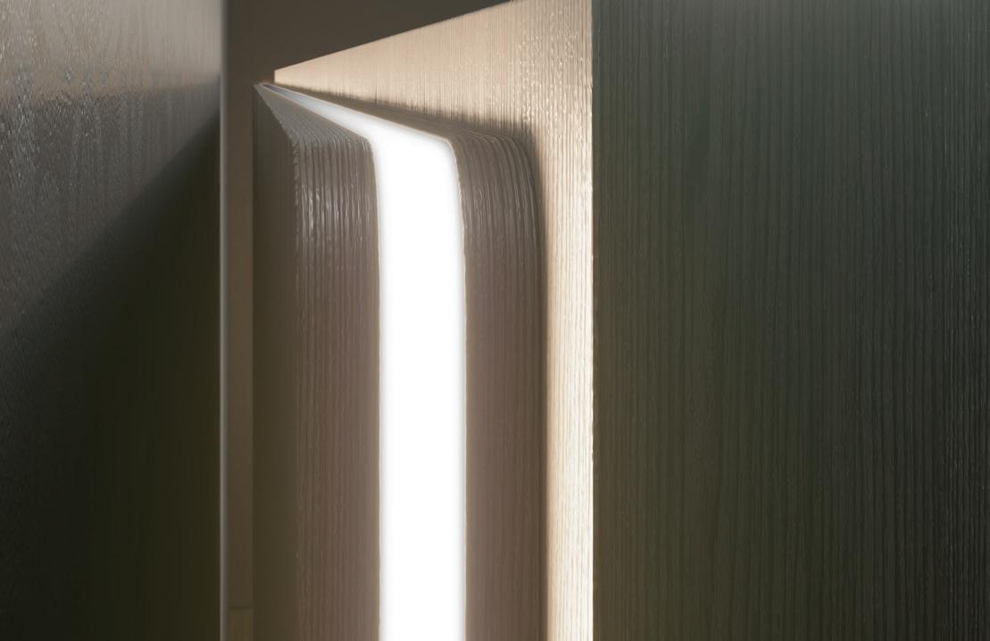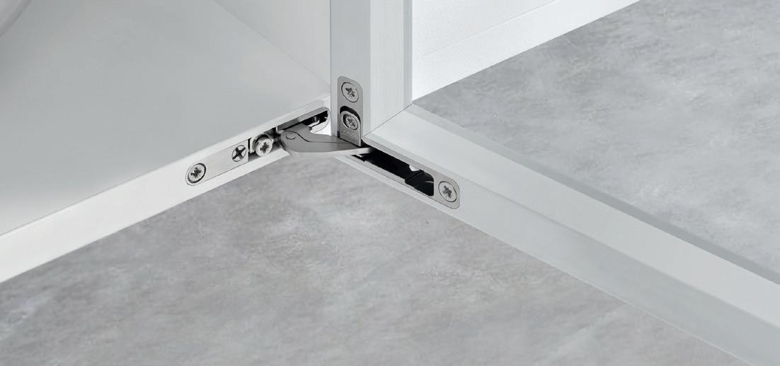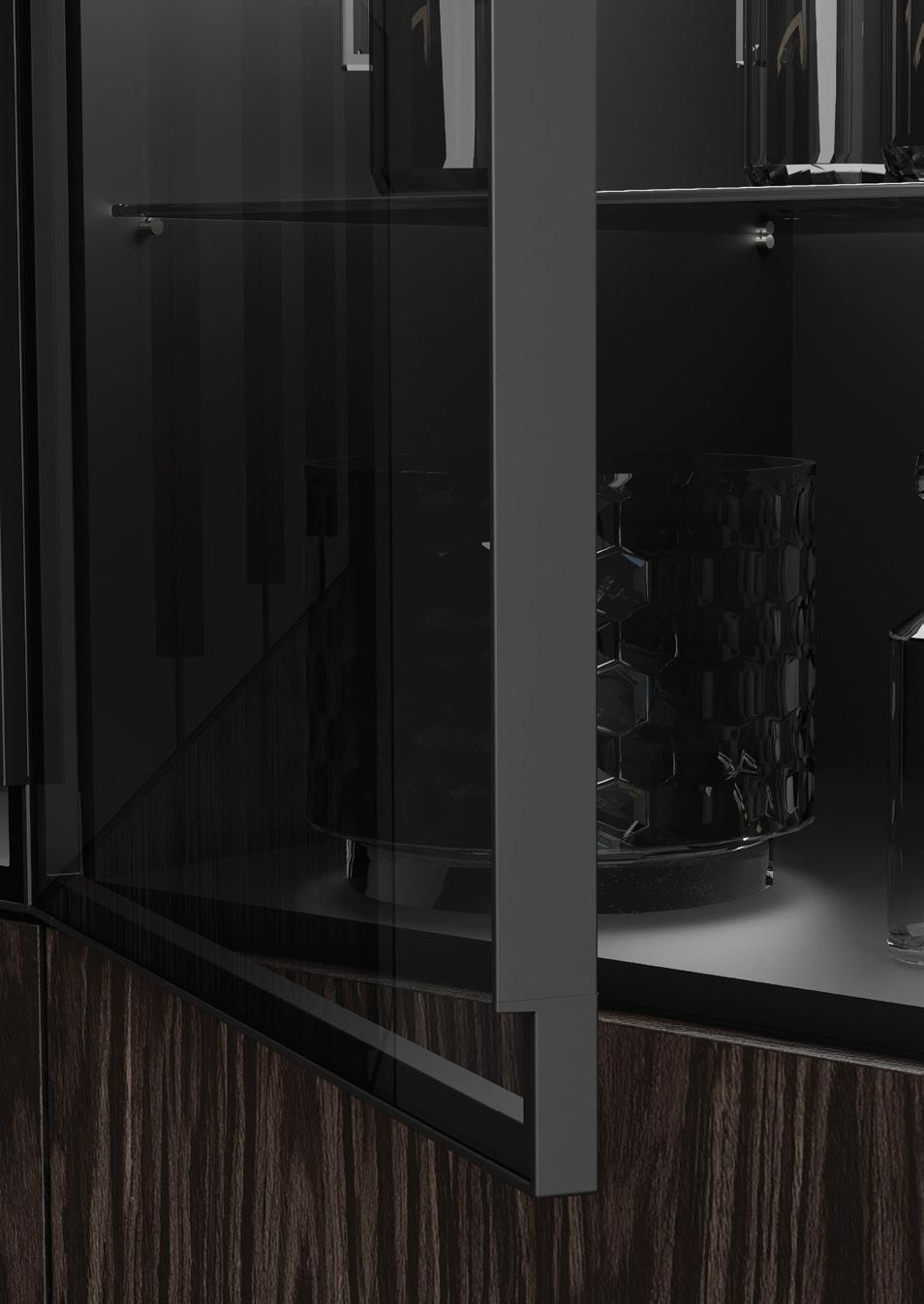 Exedra Gravity can be supplied with hinges and Smove, for a decelerated closing, or Push to open hinges for handle-less doors.