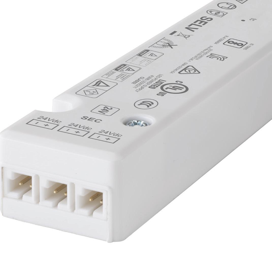 • 24v DC independent electronic LED power supply with 3 output terminals. (use D1160301 distributor for additional outputs terminals)