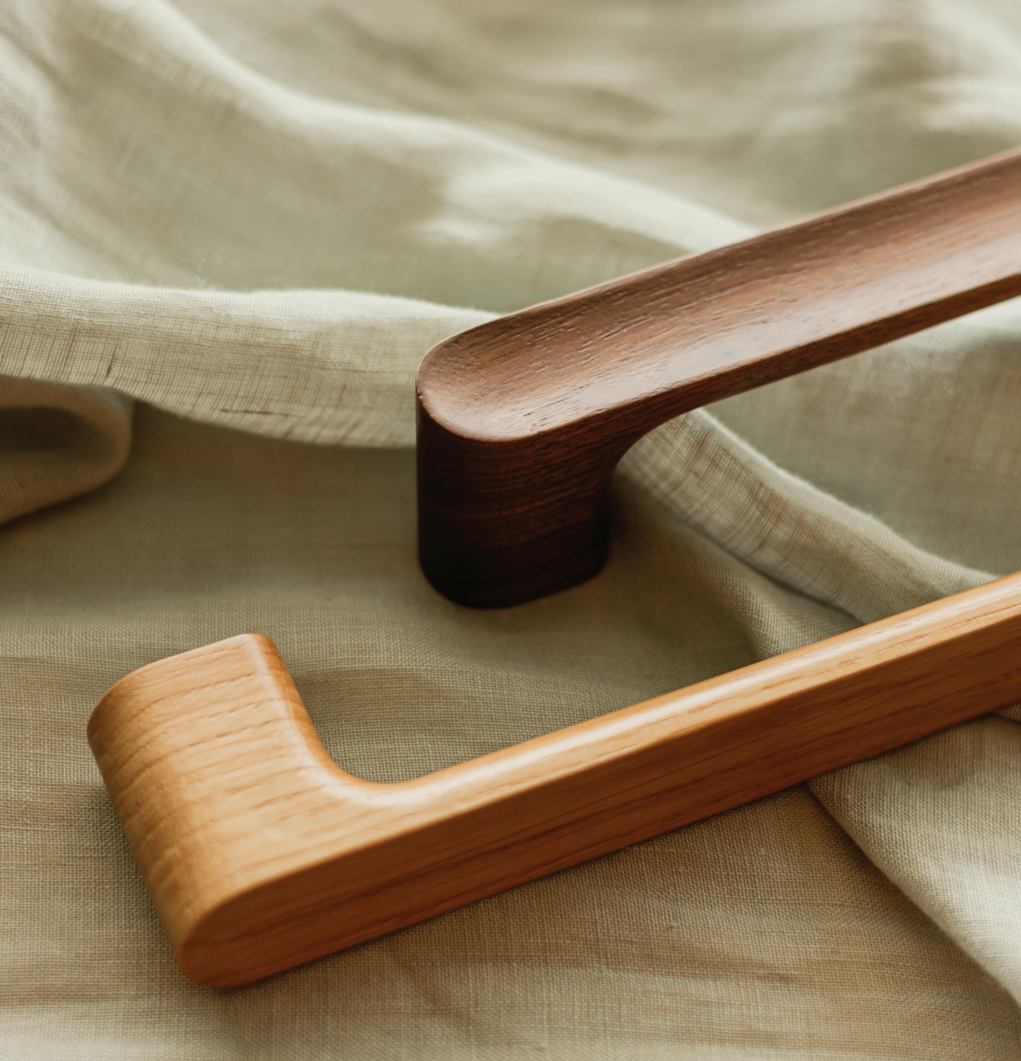 Crafted from high-quality materials and finished in premium oak and walnut, the Luv Wood collection includes handles, back-to-back pulls, wall hooks, and door stops, each designed to work in harmony.