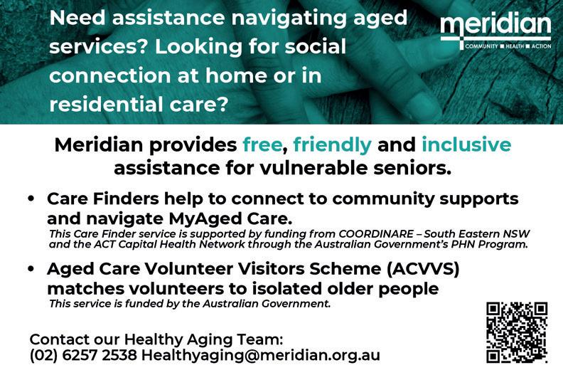 Meridian supports older people, particularly LGBTIQA+ people and those from diverse backgrounds, navigating aged care services and reducing social isolation. We provide Care Finder services and the Aged Care Volunteer Visitor Scheme in the ACT and region.