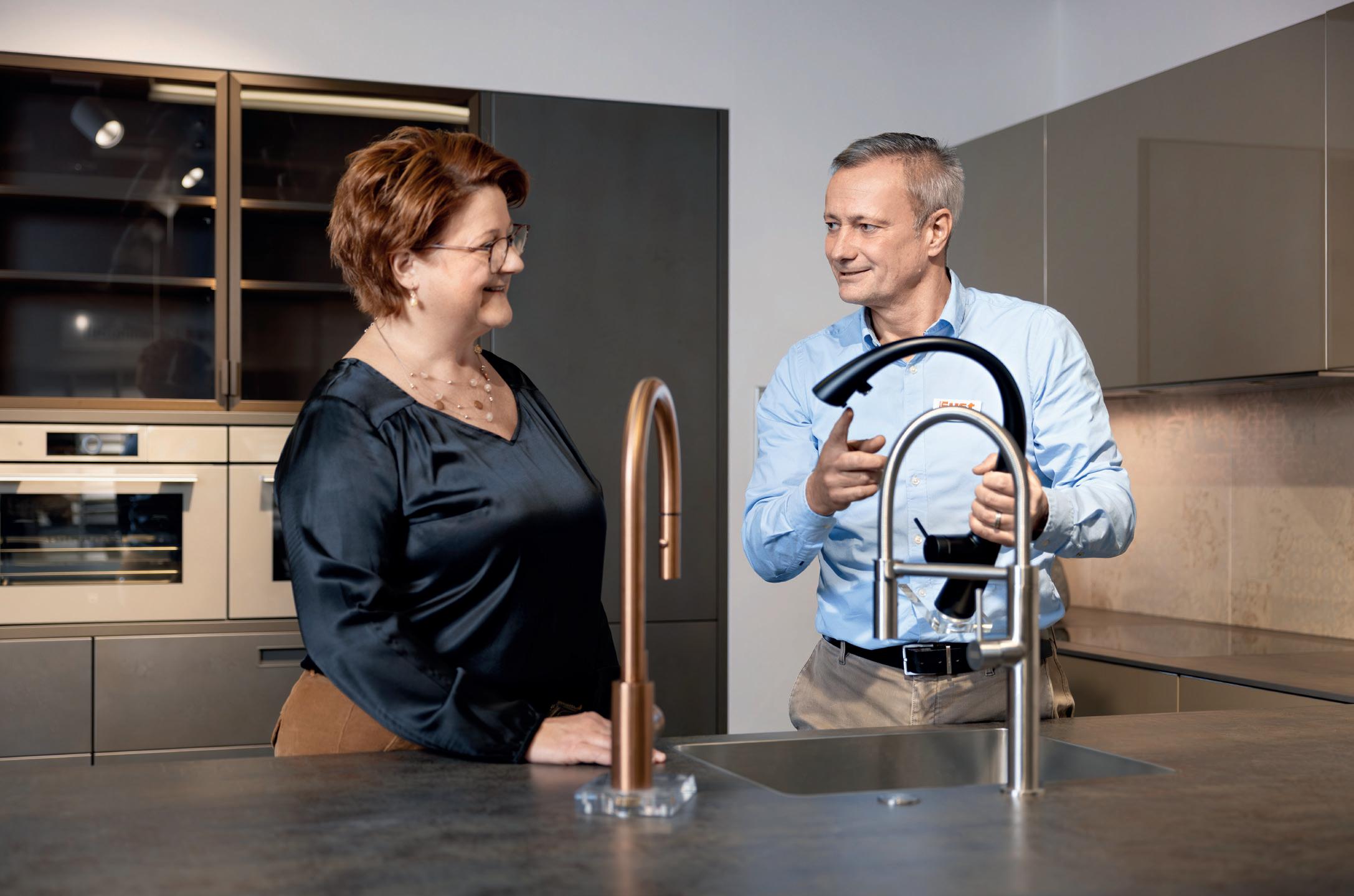 Qu’il s’agisse de purisme, d’élégance ou de caractère affirmé: nous exigeons ce qu’il y a de mieux. C’est pourquoi, en matière de robinetteries, nous misons sur une combinaison de marques propres et de partenaires forts. Car au final, c’est la robinetterie qui donne le ton: en signant d’une manière unique le flux de l’eau et l’ensemble de votre point d’eau et de préparation.