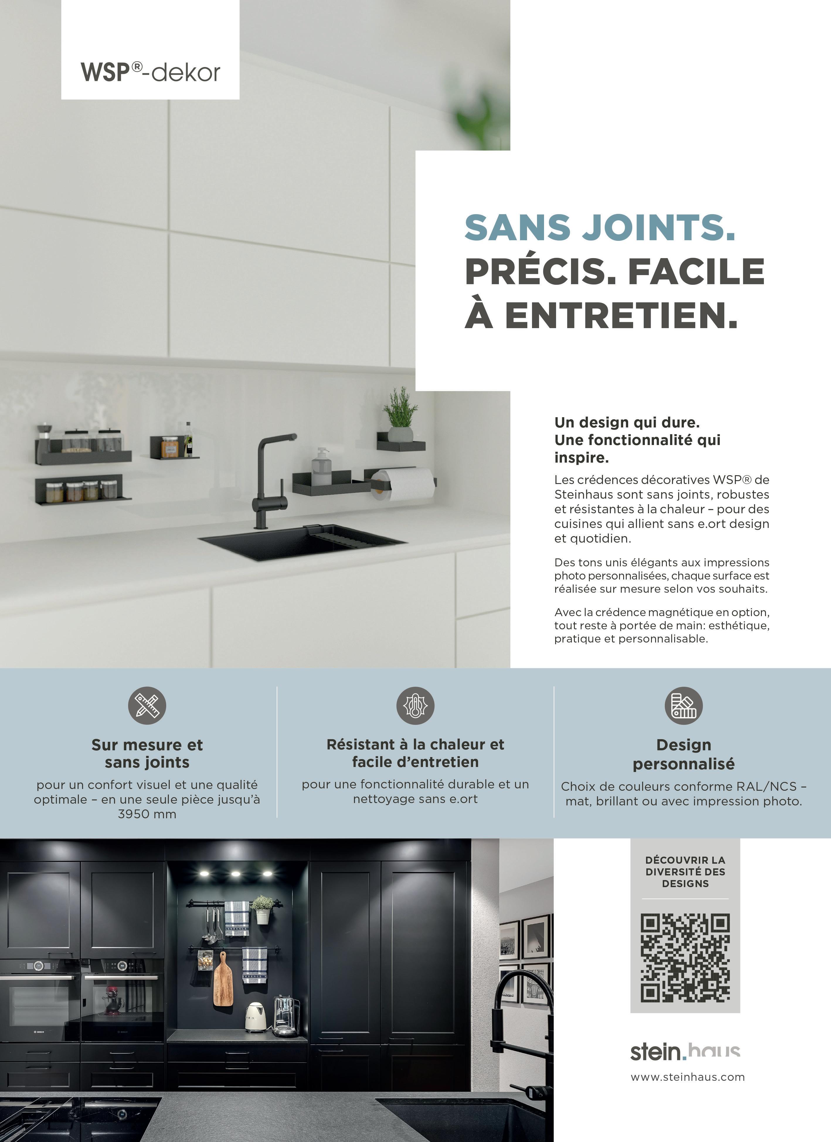 Ce magazine vous présente toute la diversité de nos cuisi nes, qui sont autant de sources d'inspiration. Découvrez des designs modernes, des matériaux durables et des solutions bien pensées alliant esthétique et praticité au quotidien. Chez nous, vous trouverez tout ce qu'il faut pour concevoir la cuisine de vos rêves.