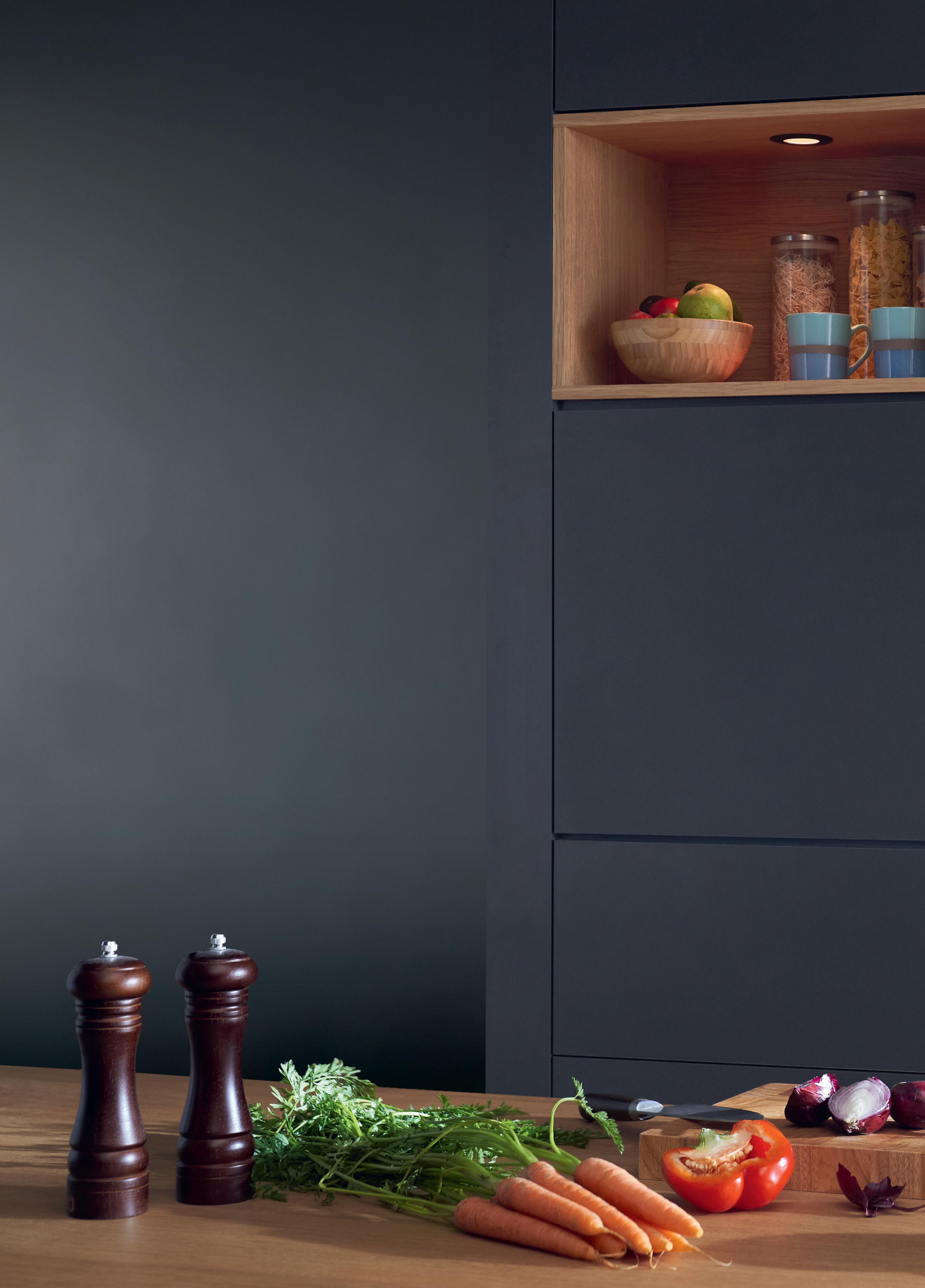 Les surfaces en verre acrylique opaque apportent une douce luminosité, de la profondeur et de la sérénité à la pièce. D'un aspect mat et velouté, elles sont à la fois modernes et intemporelles, mais toujours d'une élégante sobriété. IDEA est un nouveau modèle de cuisine qui se décline en de nombreuses couleurs unies. Sa finition mate de qualité offre une belle profondeur. Selon l'incidence de la lumière, l'effet produit est remarquable.