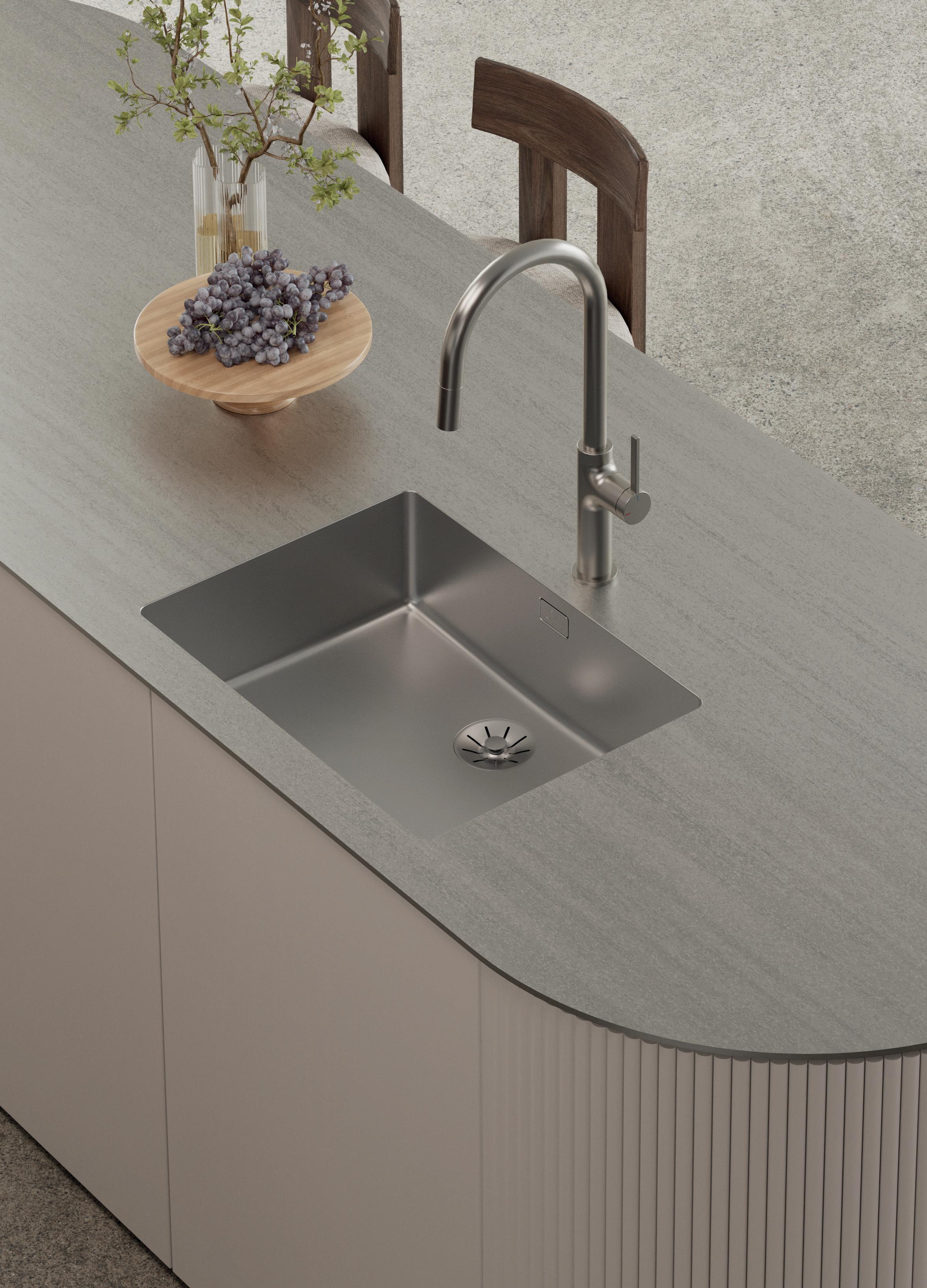 Chez nous, vous trouverez la taille et la forme adaptées pour votre évier ou votre vasque. Choisissez votre montage: sous pierre, à fleur ou encastré. Nos solutions flexibles s’intègrent à la perfection dans tout design de cuisine, sans concession d’ordre technique ou esthétique et dans une grande sécurité de planification.